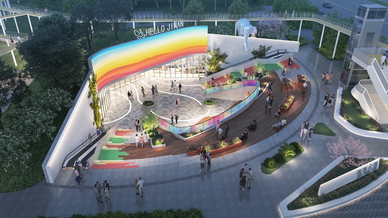 立足槐荫区“齐鲁门户 医养之都”的发展定位,项目精准捕捉济南传统商圈发展痛点,跳出“公园仅为休闲、商业仅为消费”的单一认知,推动公园生态与商业烟火深度融合、互补共生。项目整体分为地上和地下两部分,地上涵盖槐苑广场与槐荫体育场两大核心区域,地下部分则是集商业、停车于一体的商业综合体——光合城市广场,其中智能停车场设有1600个车位,实现自然休闲与商业便捷的无缝衔接。